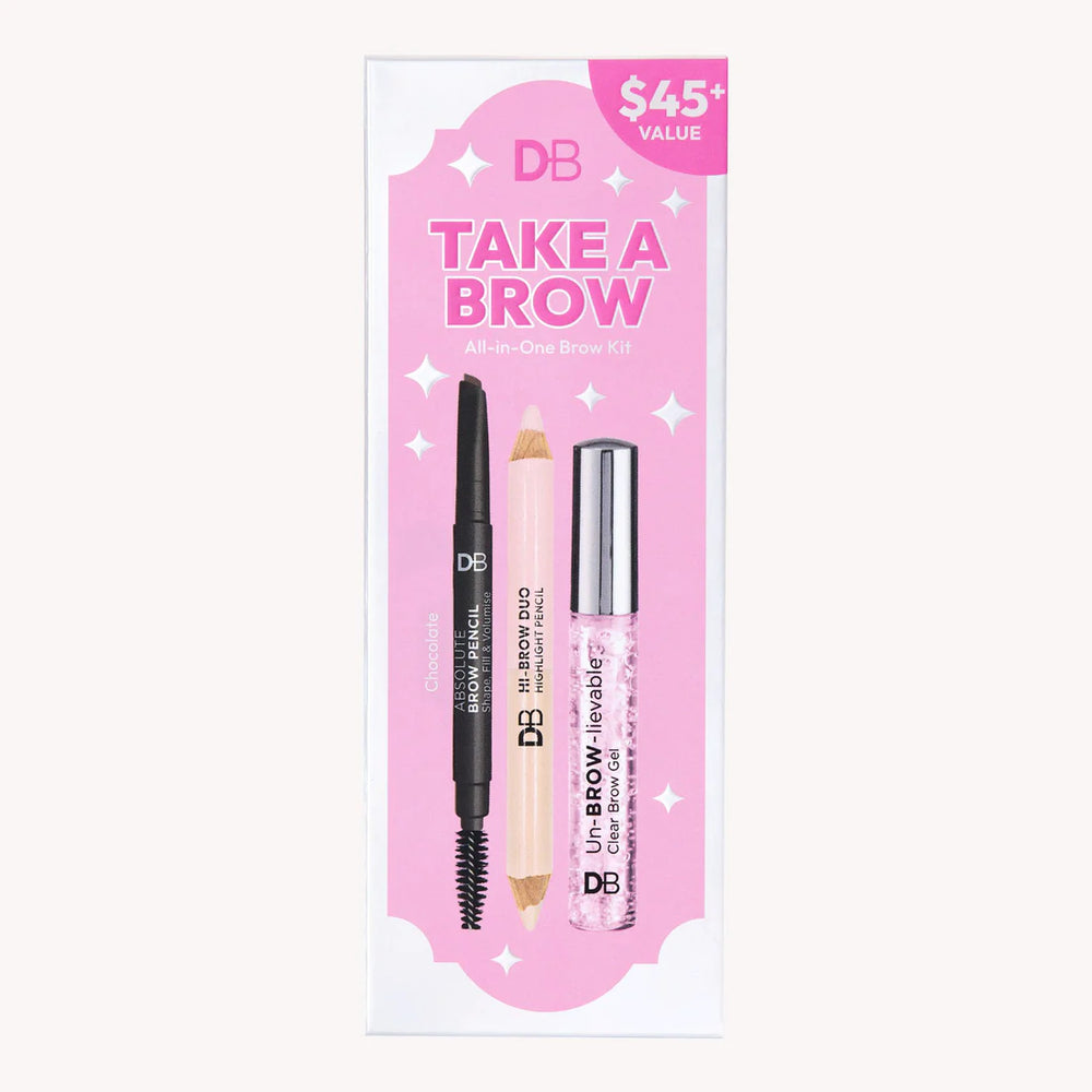 DB Take a Brow All-In-One Brow Kit is everything you need for perfectly groomed brows! Elevate your arches with our special edition kit, featuring a trio of brow essentials that guarantee your brows will look their absolute best.