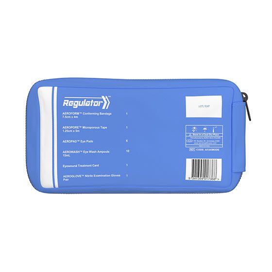 The MODULATOR Blue Eye Wound Module is a compact and clearly labeled soft pack designed specifically for managing eye injuries. It can be ordered individually as a replacement module for The Modulator Softpack or The Modulator Metal Cabinet editions. This module is crucial for workplaces where a high risk of eye injury exists or as a standalone eye wound kit. It ensures hassle-free servicing and easy restocking with individual replacement modules.